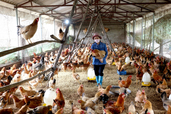Mô hình chăn nuôi tuần hoàn, khép kín của Hợp tác xã Gà vi sinh Thu Thoan (xã Minh Phú, huyện Sóc Sơn). Ảnh: Tuệ An